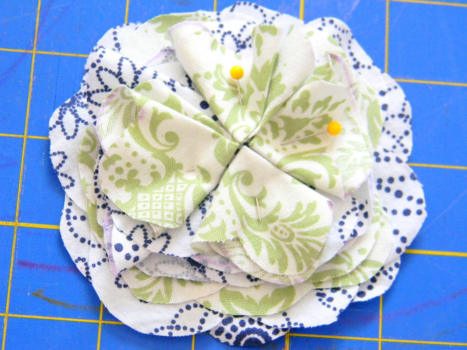 I love belts! I love that they can make jeans and a t-shirt into an outfit. I love that they give my postpartum body and little shape. I love that they can show a little personality. This month, I am making a fabric flower belt. I love the pop of color this gives to any outfit. Perhaps my favorite part was mixing and matching fabrics and trying to find the right combination – there are SO SO SO many possibilities. I made different types of flowers.