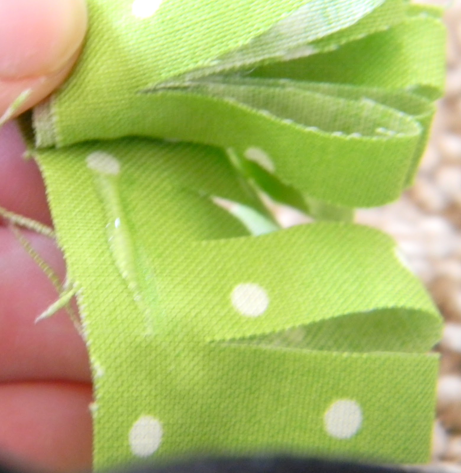 I cut a 2″ strip of fabric that was about 22″ long and folded it in half. I used hot glue to glue it shut: