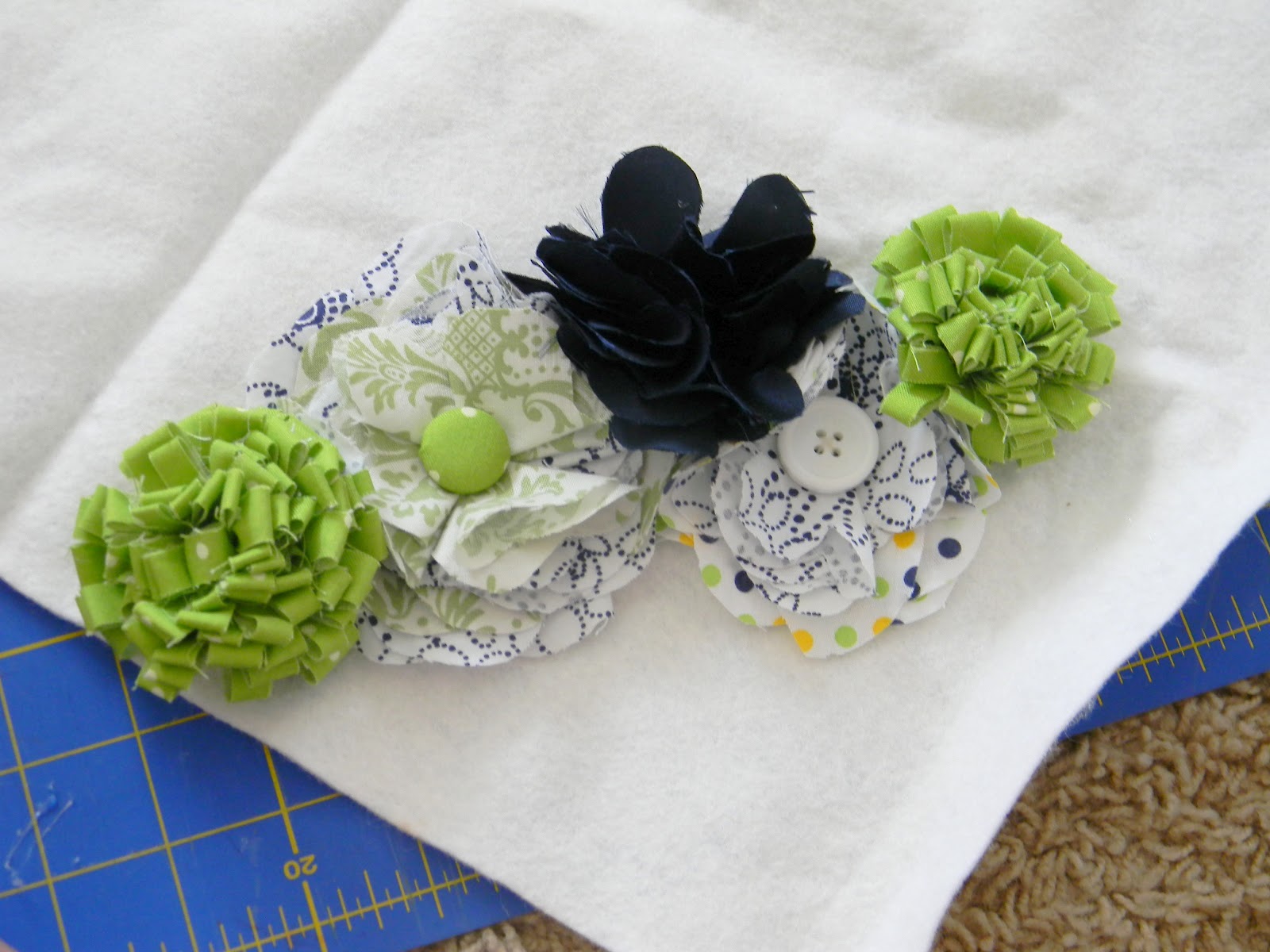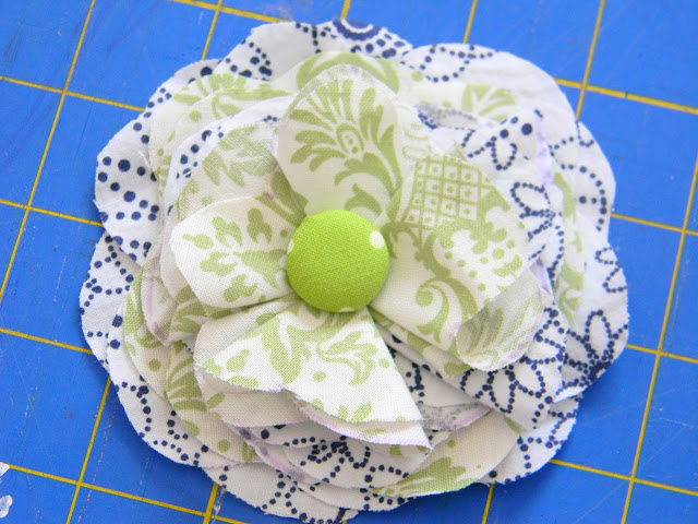 I made another one with smaller flowers and topped this one with just a plain white button that I had in my stash.