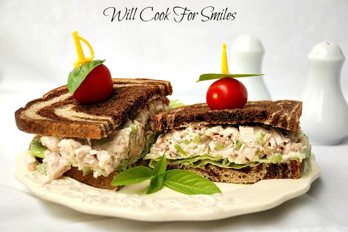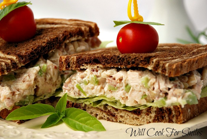 This is a little different take on a chicken salad sandwich. Sometimes, I make my chicken salad with roasted chicken but this was the first time I made it with smoked chicken. I got some smoked chicken breast from a local smokehouse restaurant and the chicken salad turned out awesome.