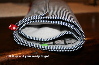 Sew velcro to keep it closed while on the go. I am debating about putting a train on the front of the pouch????