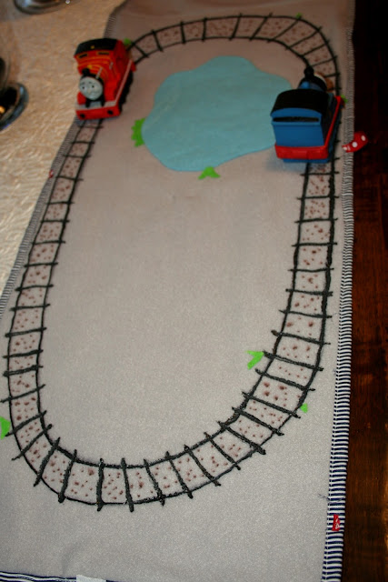 What more can a little boy want than hours of entertainment with this fast, roll up, storage compartment mat with a faux track for their trains!